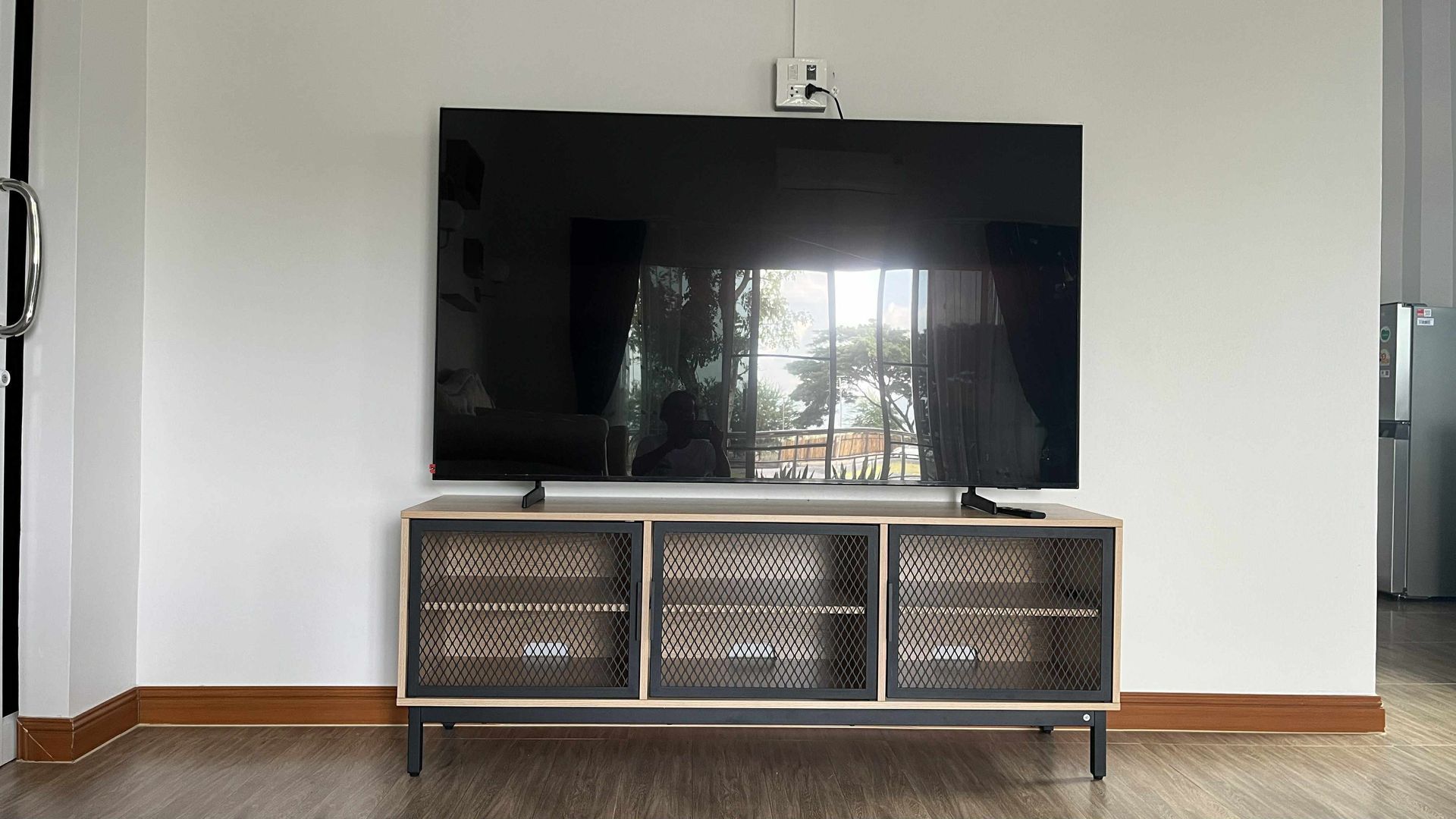 Mom House is equipped with 4 air conditioners, a living room with a large TV, a kitchen, a dining table, a large bathroom with a rain shower, a fridge-freezer, a microwave, a toaster, a kettle, glasses, and cutlery.