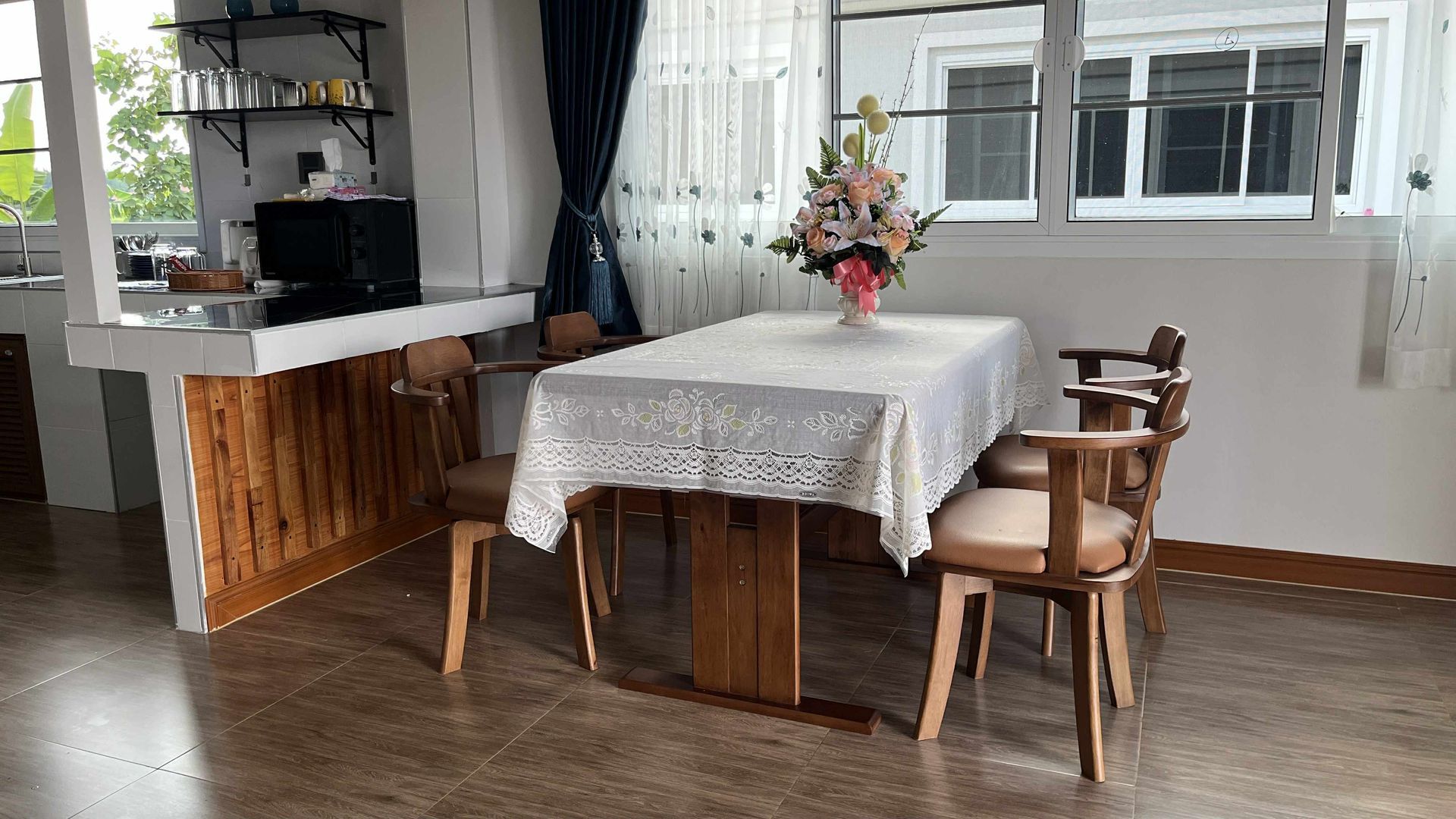 บ้านพักคุณแม่มีเครื่องปรับอากาศ 4 เครื่อง ห้องนั่งเล่นพร้อมทีวีจอใหญ่ ห้องครัว โต๊ะรับประทานอาหาร ห้องน้ำขนาดใหญ่พร้อมฝักบัวแบบเรนชาวเวอร์ ตู้เย็นพร้อมช่องแช่แข็ง ไมโครเวฟ เครื่องปิ้งขนมปัง กาต้มน้ำ แก้วน้ำ และช้อนส้อม
